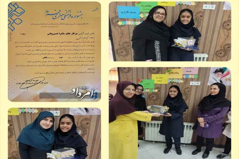 مانترا خسرویانی دانش آموز پایه هفتم دبیرستان متوسطه اول قیاس در چهلمین جشنواره فرهنگی هنری و ادبی دانشآموزان شهر تهران جایگاه نخست در مدرسه و رتبه دوم در سطح منطقه رشته نقالی را به دست آورد.