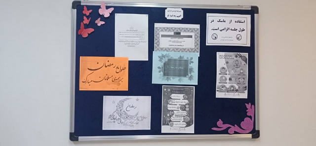 بنابر اعلام اداره آموزش و پرورش مبنی بر بازگشایی مدارس و برگزاری کلاس های حضوری ، روز 13 فروردین مدرسه جهت حضور دانش آموزان نظافت و ضدعفونی و مطالب آموزشی بر روی برد ها قرار داده شد