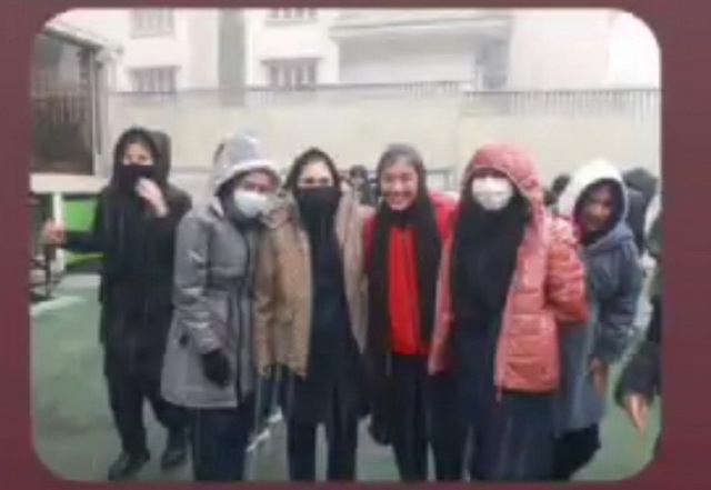 یک روز برفی با حضور کادر و دانش اموزان و شورو شوق و بازی های کودکانه در حیاط مدرسه
