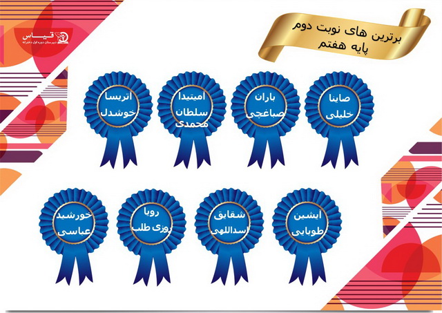 بعد از تقدیم کارنامه به اولیای محترم دانش آموزان از نفرات برتر هر سه مقطع هفتم و هشتم و نهم طبق روال هر سال تقدیر بعمل آمد .