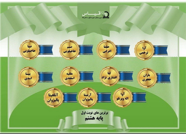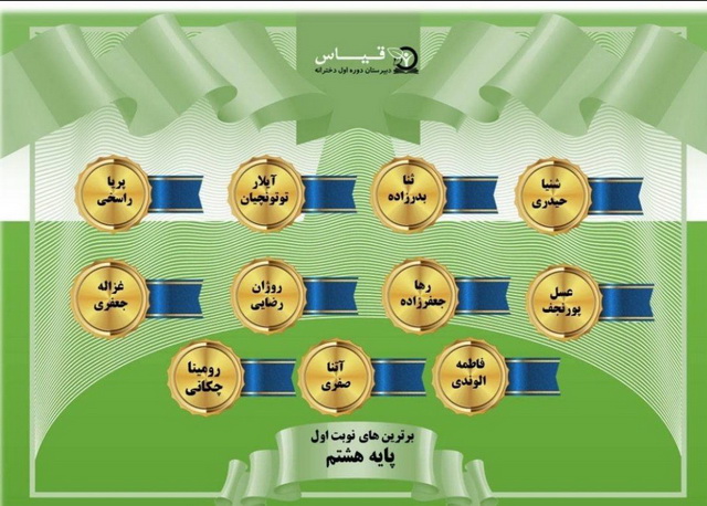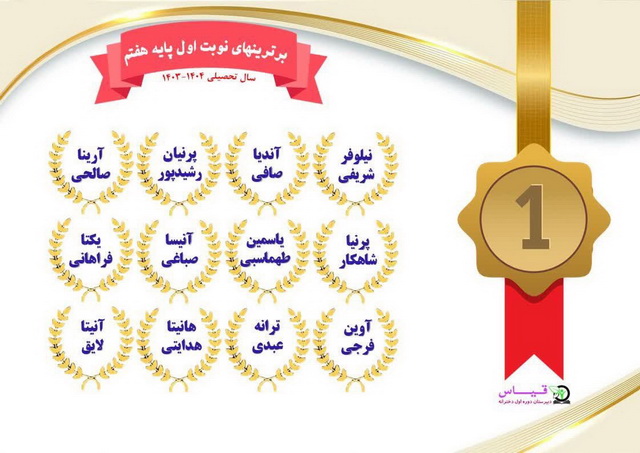 پس از برگزاری امتحانات ترم اول و تحویل کارنامه به اولیا اسامی ممتازین و نفرات برتر از طرف مسئولین پایه اعلام و تقدیر شد . امید به آن است که دانش آموزان با افتخار آفرینی و نمرات بالا سربلند و پیروز باشند .