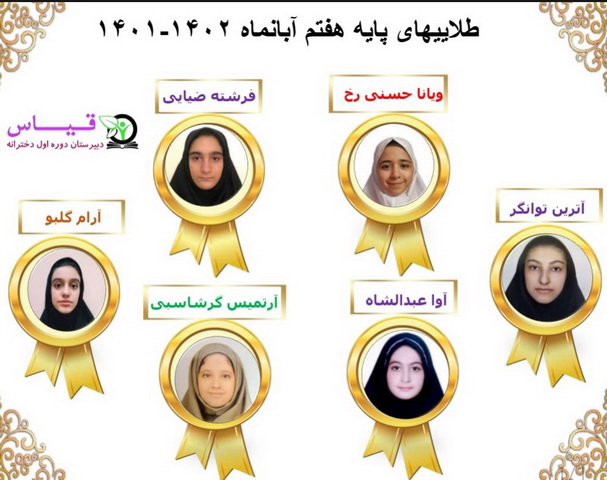 اسامی 5 نفر برگزیده وتلاشگر از هر پایه در عملکرد نمرات ماهانه ابان ماه
