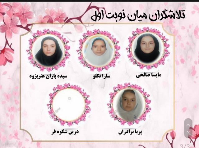 همچنین گزارش سنجش عضلانی و نمودار پیشرفت تحصیلی بچه ها در طول ترم اول تقدیم خانواده ها گردید.از نفرات برتر و تلاشگران این ماه تقدیر شد.