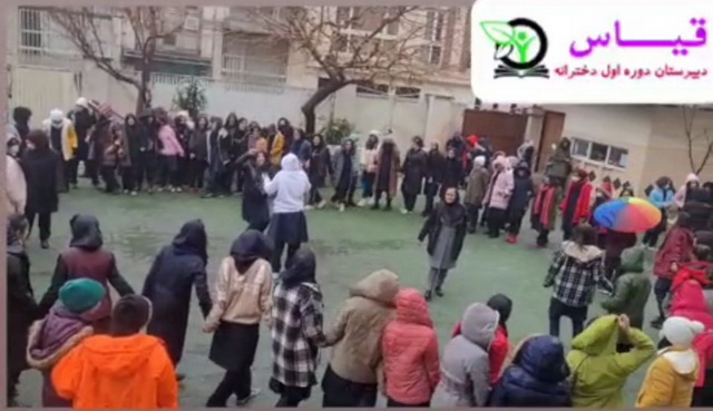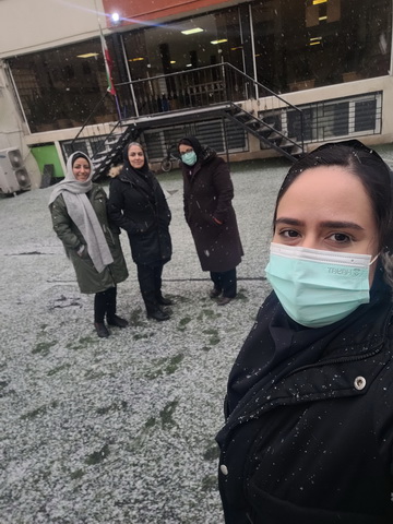 یک روز برفی با حضور کادر و دانش اموزان و شورو شوق و بازی های کودکانه در حیاط مدرسه