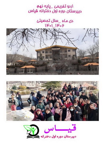 پس از هماهنگی های معاونت فرهنگی و آماده سازی امکانات و تجهیزات لازم اردوی تفریحی یک روزه با حضور کادر اجرایی و دانش آموزان پایه نهم در اردوگاه روزبه (جاجرود ) برگزار گردید .دانش آموزان پس از صرف شام سرگرم بازی های گروهی بودند .صبح روز بعد پس از صرف صبحانه،میان وعده و ناهار اردوگاه را به مقصد مدرسه ترک کردند.
