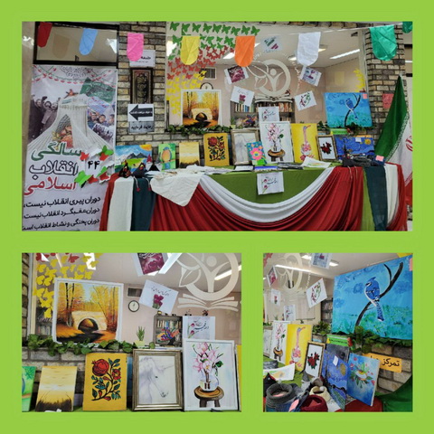 به مناسبت ایام الله دهه فجر و 44 امین سالگرد شکوهمند انقلاب اسلامی دانش آموزان هر سه پایه آثار هنری خود را با هماهنگی معاونت فرهنگی و همکاری شورای دانش آموزی در سالن مدرسه به نمایش گذاشتند.