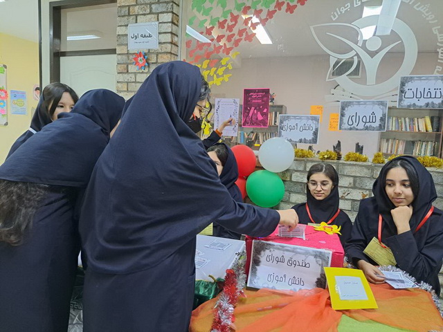 در راستای برگزاری انتخابات شورای دانش آموزی، از میان دانش آموزان علاقهمند هرپایه تعدادی برای انتخابات نامزد شده و با تبلیغ در محیط مدرسه در مورد دیدگاهها، نظرات و برنامههای خود برای همکلاسیهایشان صحبت کردند پس از برگزاری و شمارش ارا افراد مورد نظر انتخاب شدند.