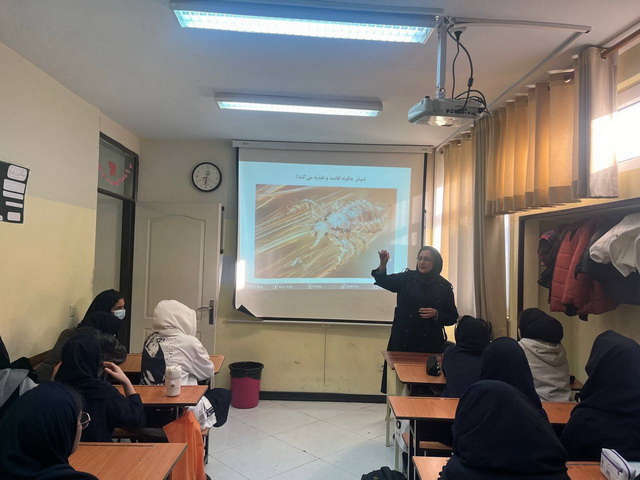 به همین منظور کارشناس این حوزه سرکار خانم چوبدار اولیای محترم دانش اموز اناهید یزدان پرست برای دانش اموزان جلسات اموزشی جهت اگاه سازی دانش اموزان در خصوص مراقبت از پوست و مو برگزار کردند.