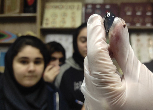 به همین منظور دانش اموزان پایه هشتم به تشریح چشم گاو پرداختند این تشریح برای بچه ها بسیار جذاب و هیجان انگیز بود