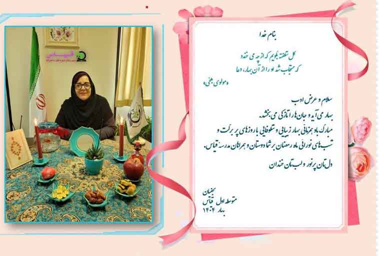 اولیای گرامی ،همکاران محترم و دانش اموزان عزیز فرا رسیدن سال نو و فرخنده نوروز باستانی را تبریک عرض می نماییم و سالی سرشار از تندرستی برایتان ارزومندیم.